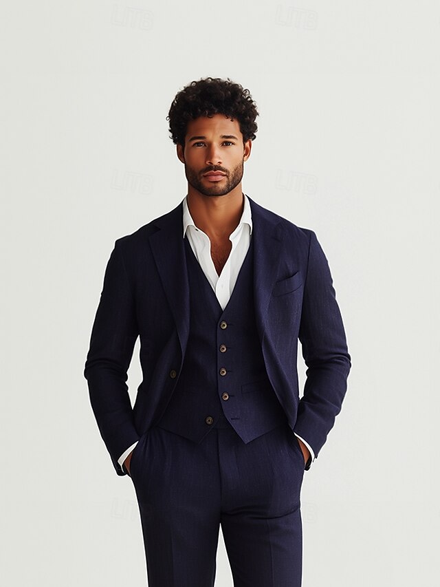 $139.99 - Men's Wedding Business Linen Suits Navy Blue Fashion Formal Summer Solid Colored Standard Fit 3 Piece Single Breasted One-button 2025. Shop for cheap Business Suits online? Buy at lightinthebox.com on sale today!