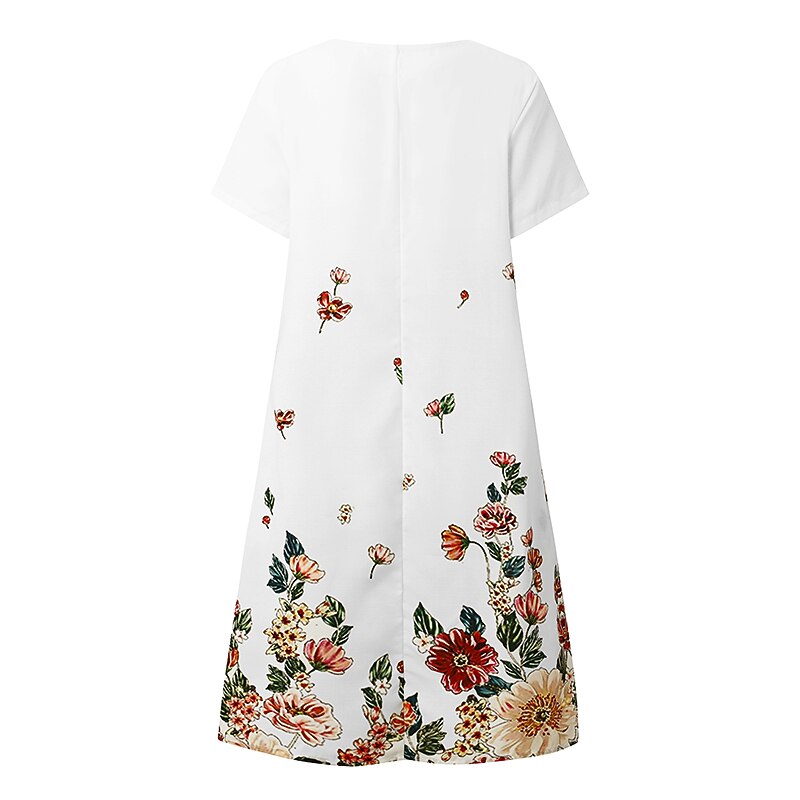 More information about Women's Midi Dress Casual Dress Shift Dress White Green Gray Short Sleeve Flower Print Spring Summer V Neck Basic Daily Vacation Weekend