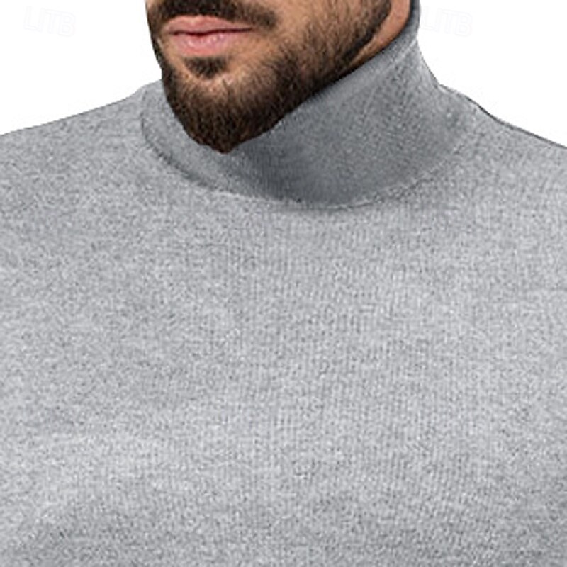 Men's Sweater Pullover Sweater Jumper Ribbed Knit Regular Tops Knitted Slim Fit Plain Turtleneck Knitwear Contemporary Casual Daily Wear Clothing Apparel Fall Winter Black Burgundy M L XL 12