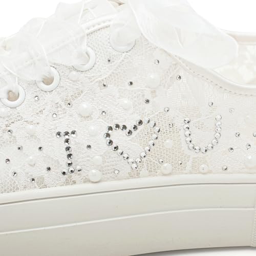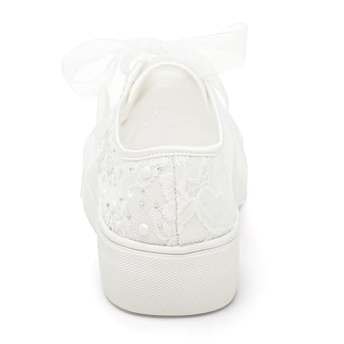Elivandon 9996 Wedding Shoes Lace Bridal Sneakers 1.46" Platform Bride Tennis Shoes Sparkling Rhinestone Wedding Sneakers 6