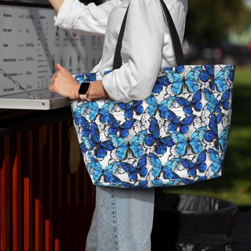 HOT ! Large Beach Bags Water-resistant Sandproof - Blue and White Butterflies Cute Beach Tote Bags for Women with Zipper