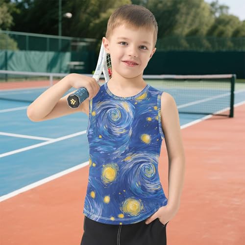JUNZAN Starry Night Moon Tank Tops for Children Sleeveless Teens Vest Youth Undershirt for Biking Surfing Vacation Swim 3T 4