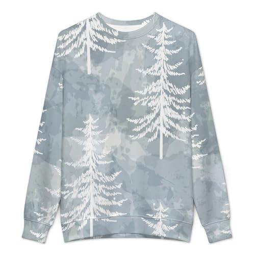 HOT ! Mens Crewneck Sweater Christmas Silver Red Tree Crew Neck Sweater Long Sleeve Pullover Sweaters
