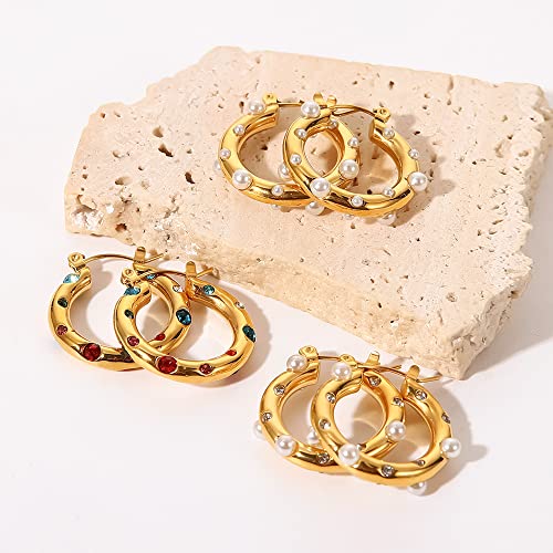 18K Gold Pearl and Moissanite Hoop Earrings, Vintage and Delicate Earring Design, Fashion Jewelry Gift 1
