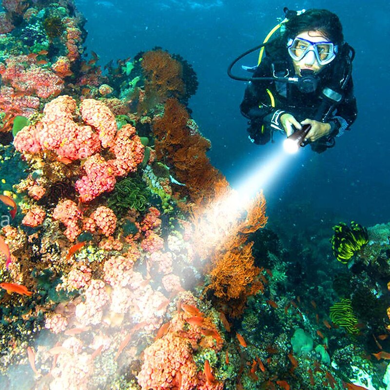 More information about LED Flashlights Super Bright Diving Flashlight IP68 Highest Waterproof Rating Professional Diving Light Powered by 18650 Battery With Hand Rope
