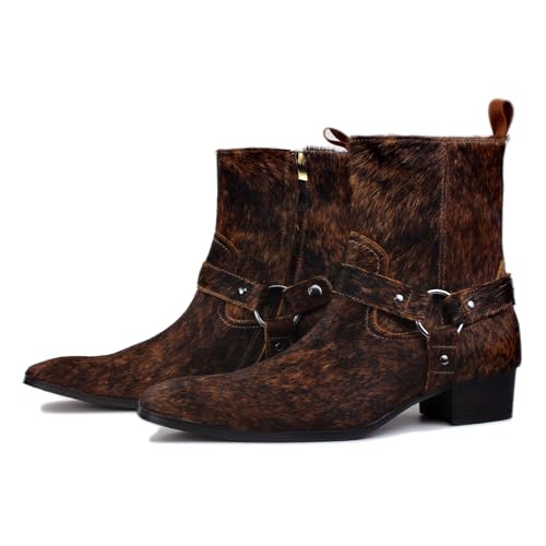 OSSTONE Men Chelsea Ankle Boots Leather Pony Hair Chukka Boots with Side Zipper Heel Dress Boots OS-JY021-B-R Natural Brown 6
