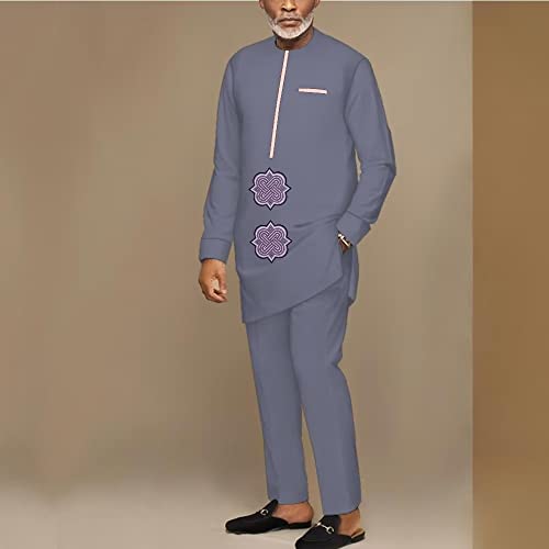 African Suits for Men Dashiki Outfits for Wedding Long Sleeve Mens African Attire 2 Piece African Top and Pant 2