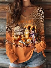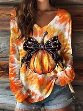 More information about Halloween Women's T shirt Pumpkin Graphic Vintage Stylish Casual Long Sleeve V Neck Regular Tops Daily Weekend Print Black Yellow Orange Brown Spring Fall