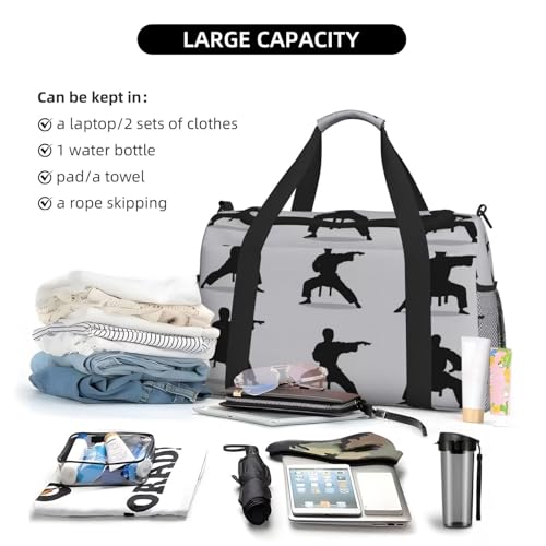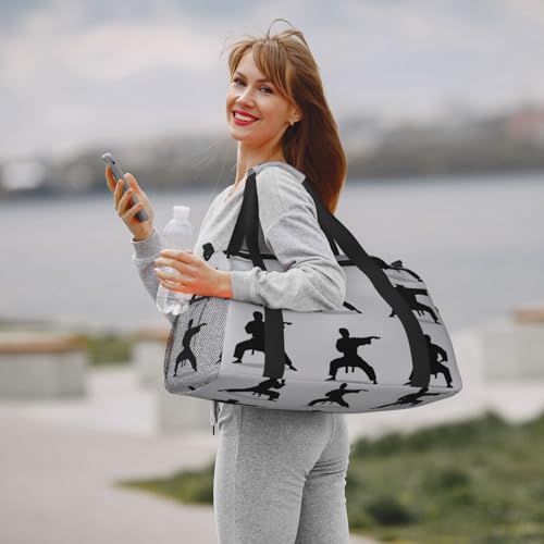 HOT ! Silhouettes of Martial Arts Print Travel Duffle Bag - Foldable Personal Item Travel Bag for Women & Men,13x10.2x19.7