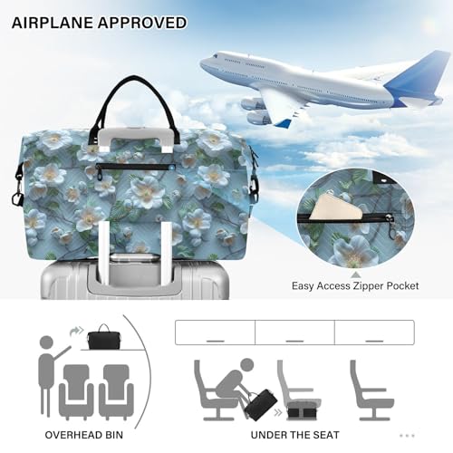Duffel Bags Modern 3d Rendering Jasmine Aqua Weekender Bag with Adjustable Strap for Business Trips Foldable bolso para mujer 7