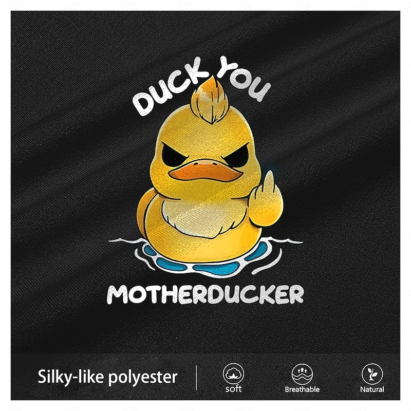 : Featuring a unique and whimsical 3D print, this T-shirt showcases a playful little yellow duck with an amusing expression, set against the fabric's rich colors of black, red, dark blue, or dark green. The bold phrase “DUCK YOU MOTHERDUCKER” complements the vibrant graphic, adding a humorous twist to your wardrobe.