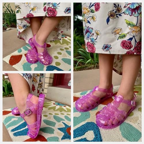 • 【EASY WEAR& NON-SLIP】 The Toddler jelly sandals are breathable and fairly soft without hurting feet and bruising ankles. And have an adjustable buckle for that perfect fit so they will stay on while your busy toddler/little kid is on the go.it is easy for kid to learn to put on and take off their shoes by himself.