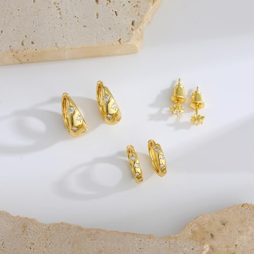 • Gold Earrings Set for Women: Package includes 3 pairs gold starburst hoop & stud earrings stack set for effortless layering or solo wear. Perfect for cartilage, lobe piercings, or multiple ear stacks, these trendy earrings transition seamlessly from everyday elegance to party glam.