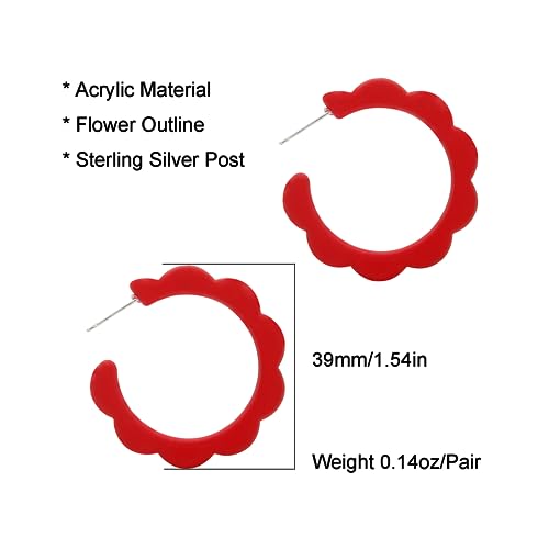 HOT ! Acrylic Flower Hoop Earrings, Lightweight Floral Open Hoops Candy Color Hoop Earrings for Women