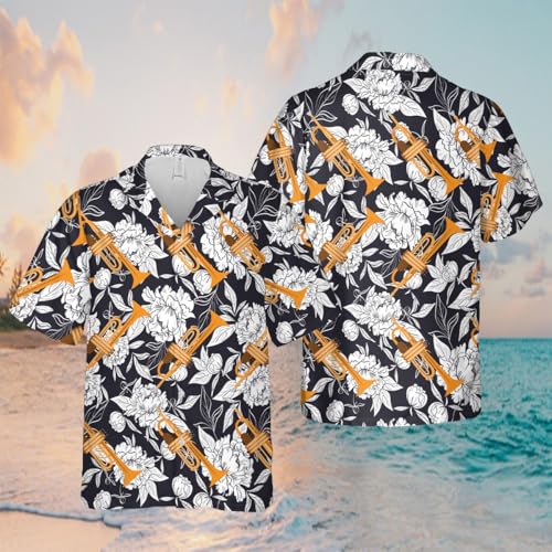 HOT ! Men's Trumpet Hawaiian Shirt, Trumpet Shirt Men Short Sleeve, Vintage Hawaiian Shirt for Men, Trumpet Shirt
