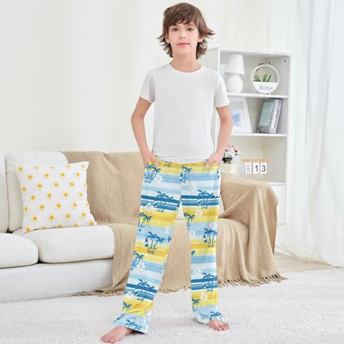 Boy's Pants Mood Windsurf Plam Trees Jogger Pants Elastic Waist Long Bottoms Trousers with Pockets 6-14 Years