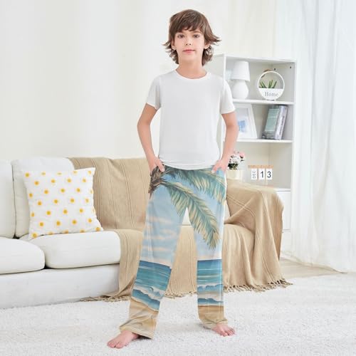 Boys' Pants Pastel Beach Coconut Tree Long Bottoms Jogger Pants Elastic Waist Trousers with Pockets S-XL