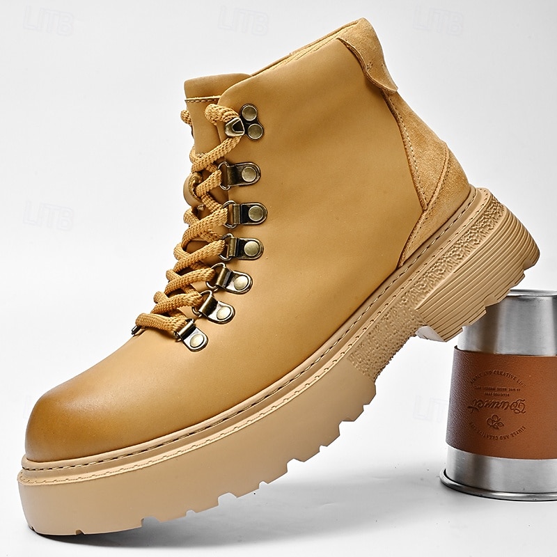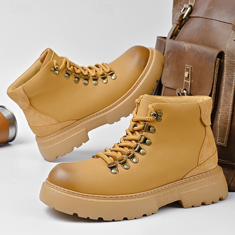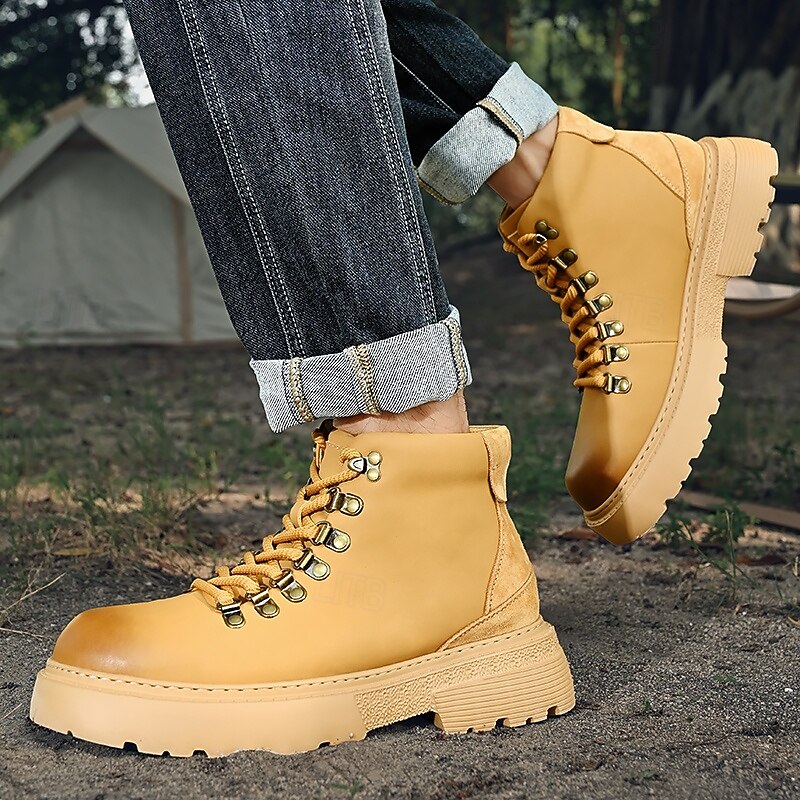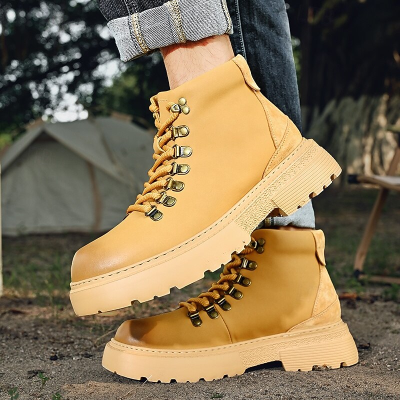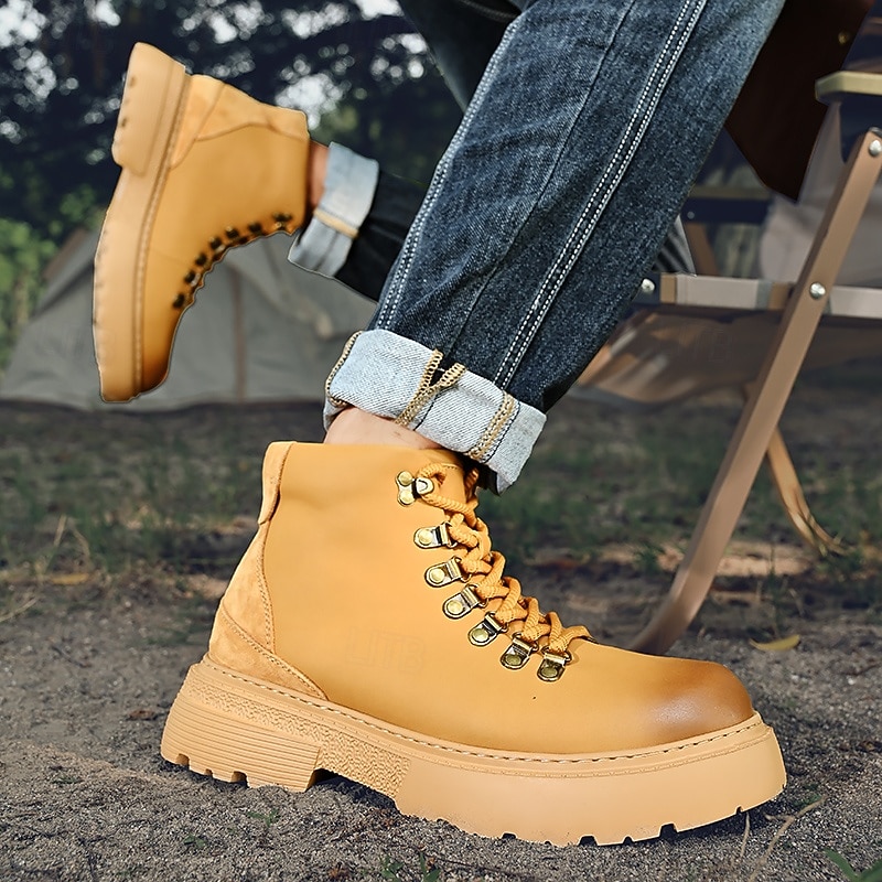 sought-after ! Men's Yellow High-Top Hiking Boots – Lightweight Anti-Slip Outdoor Work and Trekking Shoes for Casual and Rugged Use