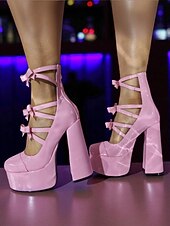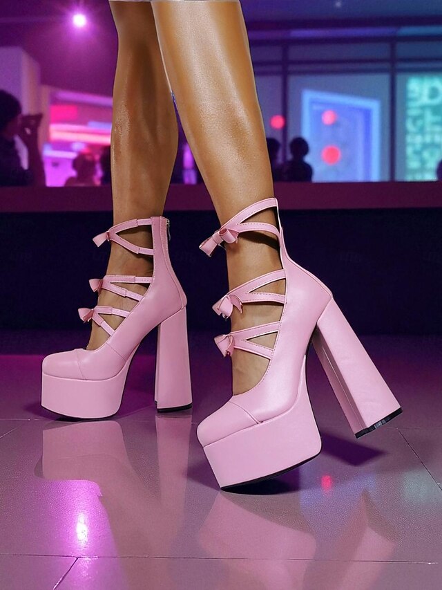 Why Choose Women's Pink Platform High Heel Pumps Chunky Block Heels with Bow Straps Sexy Party Shoes for Nightlife and Clubwear?