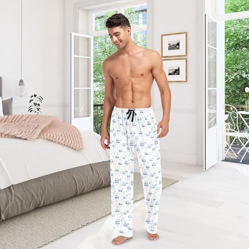 More information about Men's Cute Blue Jellyfish Pajama Pants with Pockets - Straight Fit Cotton Sleep Bottoms for Lounge & Nightwear#409