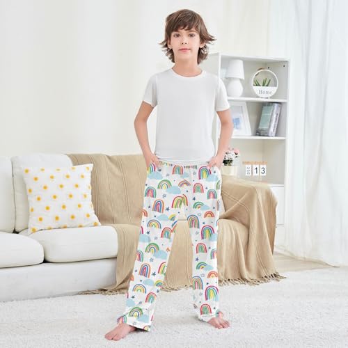 HOT ! Rainbow Star Boys Long Pants Soft Trousers Elastic Waist Kids Lounge Bottoms with Pockets S-XL