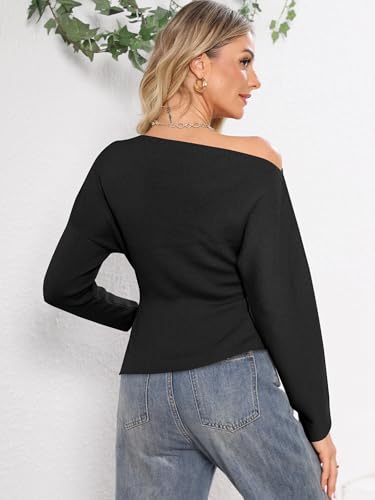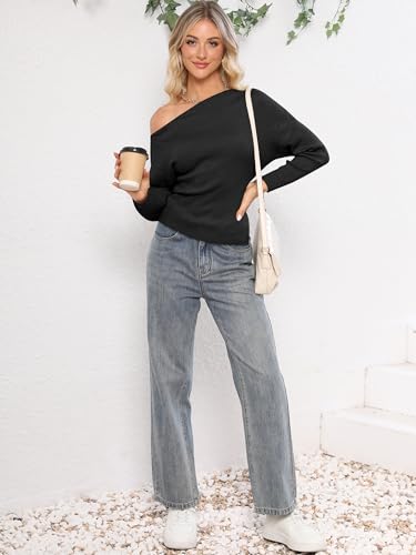 HOT ! Womens Off Shoulder Sweaters 2025 Fall Long Batwing Sleeve Loose Fit Knit Tops Casual Pullovers Jumpers