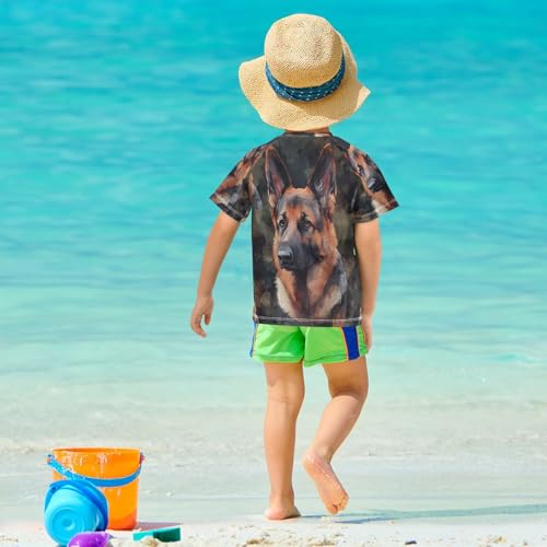 Boys Short Sleeve T-Shirts Camo Dogs Shepherd Rashguard Kids Swim Shirts Sun UPF 50+ 1