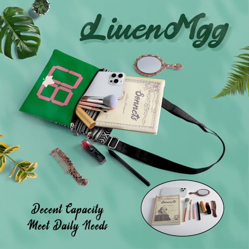 Green Pink Sorority 08 Messenger Bag Small Ethnic Pattern Adjustable Strap Crossbody Zipper Pouch Sorority AKA Phone Organizer Wallet Cute Shoulder Handbag for Women Friends 4