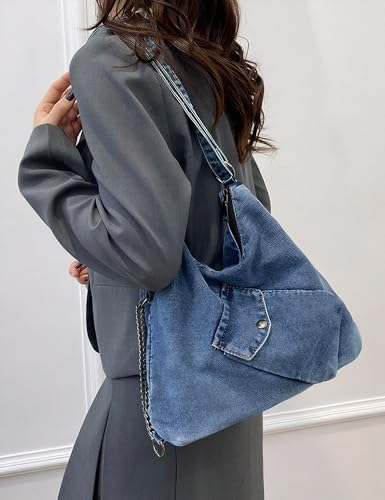 Large Denim Tote Hobo Bag for Women, Jean Purse Shoulder with Adjustable Strap(Blue) 5
