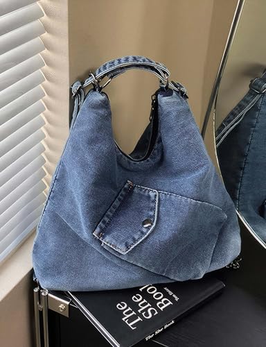 HOT ! Large Denim Tote Hobo Bag for Women, Jean Purse Shoulder with Adjustable Strap(Blue)