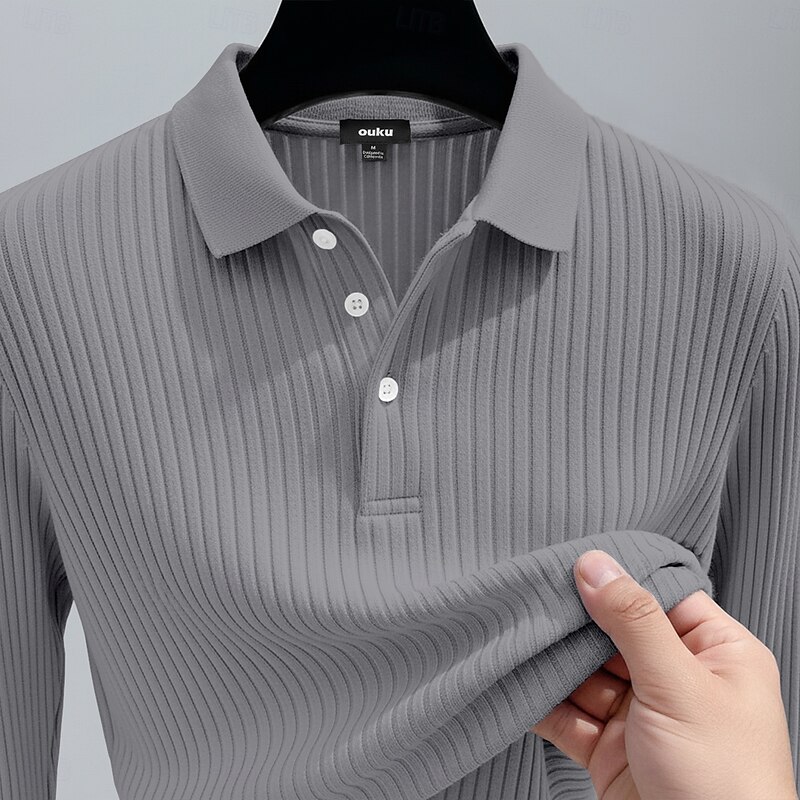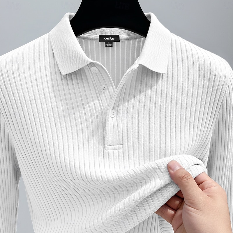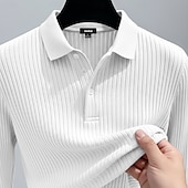 More information about Men's Rib Knit Top Muscle Shirt Street Casual Lapel Long Sleeve Basic Modern Plain Buttons Spring Fall All Seasons Slim Fit White Navy Blue Blue Gray Rib Knit Top
