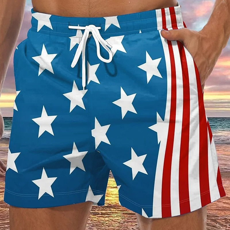 More information about Men's Graphic Prints National Flag Swim Trunks Swim Shorts Board Shorts Mid Waist Hawaiian Boho Casual Daily Holiday Drawstring with Mesh lining Elastic Waist Designer Clothing Apparel