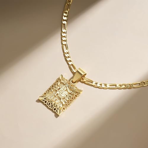 HOT ! KissYan Zodiac Pendant Necklace for Women Men, 14K Gold Plated Square Constellation Sign Horoscope Figaro Chain Jewelry Birthday Gift