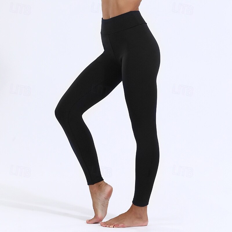 More information about Women's Leggings Cozy Fleece Lined Cozy Leggings Casual Full Length Mid Waist Plain Elastic Waist Thermal Warm Stretchy Vacation Street Causal claret Grey Black Dark Navy Winter Regular Fit