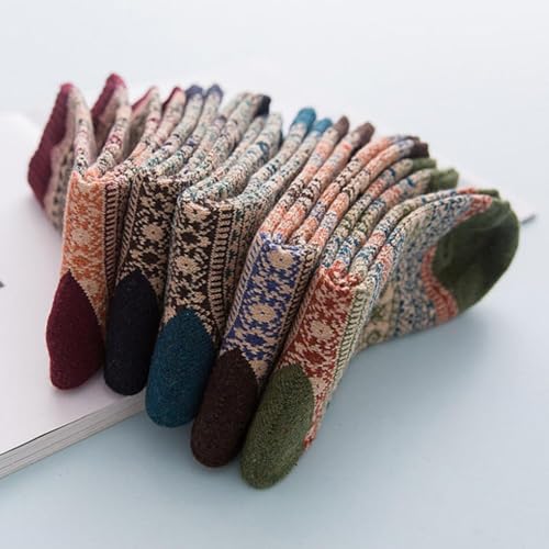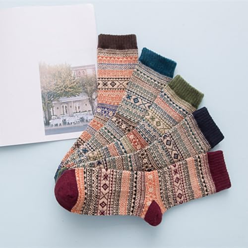 HOT ! Women Winter Socks 5 Packs Wool Socks Gifts for Mom Warm Vintage Soft Christmas Socks Thick Cold Knit Crew Socks