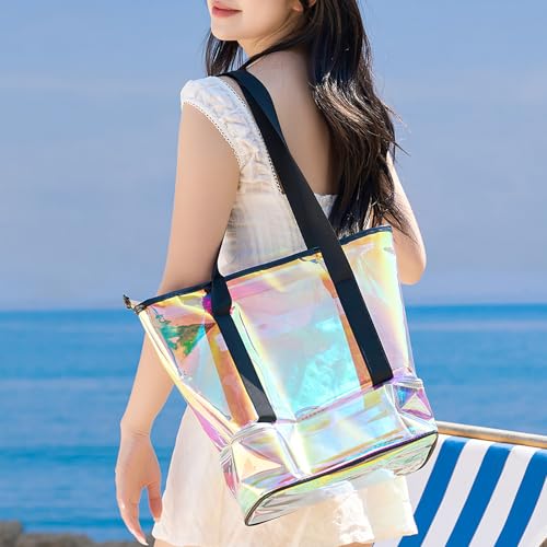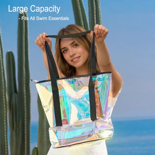 Iridescent Clear Beach Bag For Women Waterproof Large Gym & Swim Bag with Dry-Wet Compartments Large Pool Tote 6