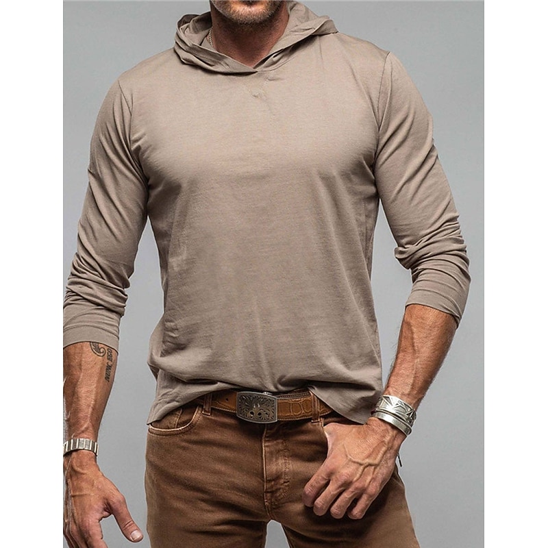 95% Cotton Men's T shirt Tee Top Plain Hooded Street Vacation Long Sleeve Clothing Apparel Polyester Fashion Designer Basic Tee 1