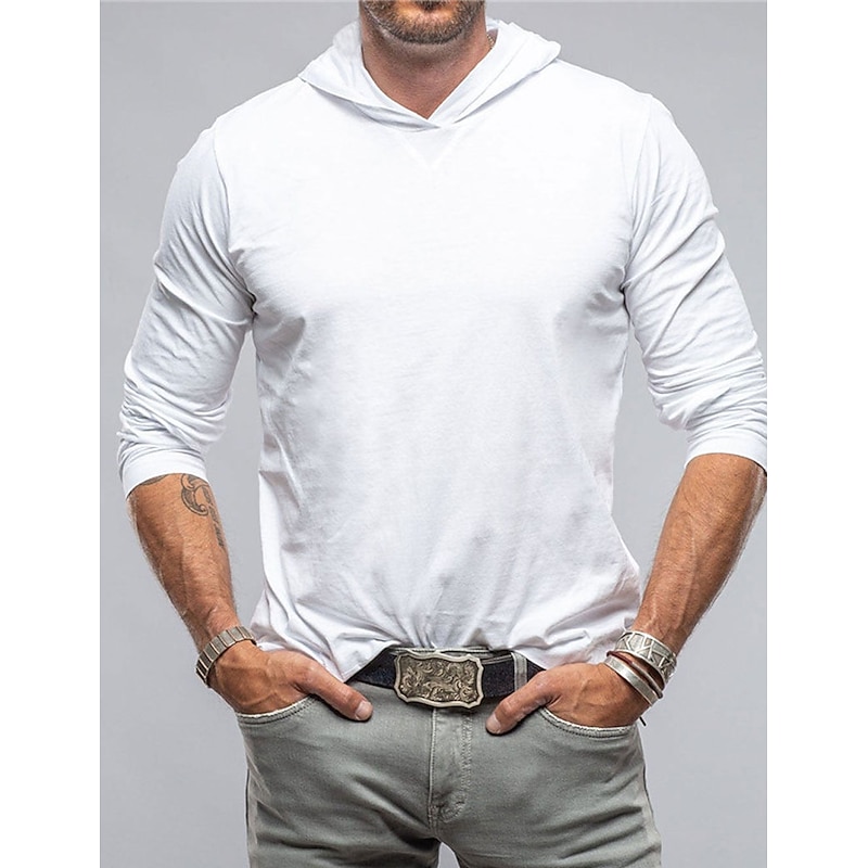 More information about 95% Cotton Men's T shirt Tee Top Plain Hooded Street Vacation Long Sleeve Clothing Apparel Polyester Fashion Designer Basic Tee