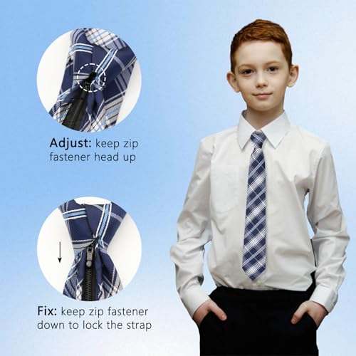 • Adjustable Boys Zipper Tie: The pre-tied kids tie is 14.17 in long from the knot and 2.56 in wide, the strap can be adjust to so that won't strangling kid's neck; Suitable for boys/girls aged 6-12 years old (age for reference only)