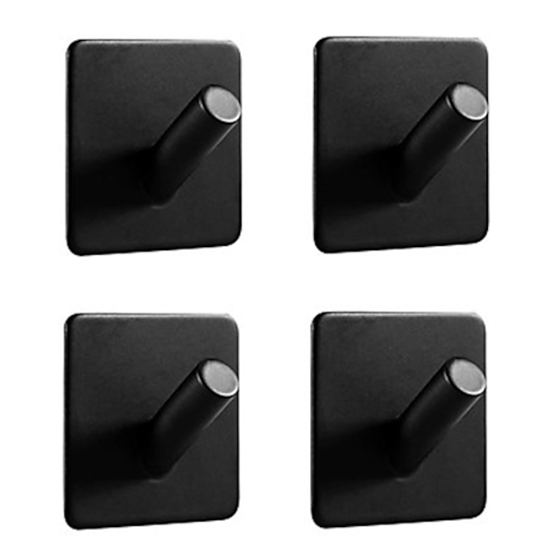 Adhesive Hooks Heavy Duty Wall Hooks 4 Packs Removable Matte Black Durable 304 Stainless Steel Wall Hangers, Waterproof Rustproof Oil Proof for Kitchen, Bathrooms, Doors, Office, Closet 9