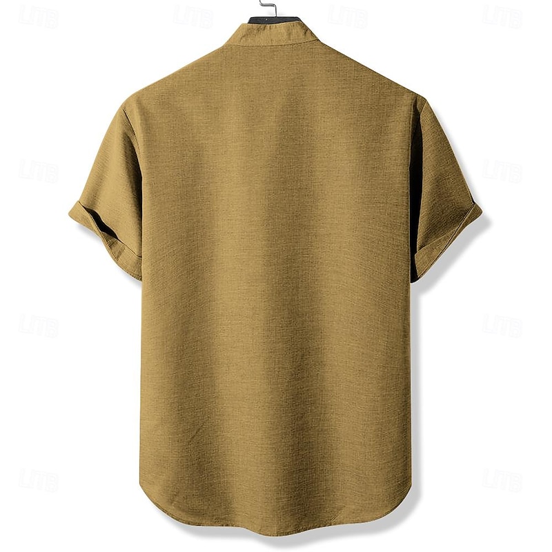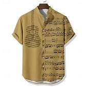 More information about Men's Boardmasters Music Guitar Shirt Button Up Shirt Short Sleeve Vintage Casual Daily Summer Spring Grandad Collar Band Collar Button Up Pocket 3D Print Blue Brown Khaki Beige