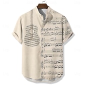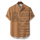 Men's Boardmasters Music Guitar Shirt Button Up Shirt Short Sleeve Vintage Casual Daily Summer Spring Grandad Collar Band Collar Button Up Pocket 3D Print Blue Brown Khaki Beige 11