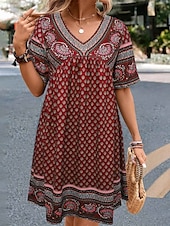 More information about Women's Mini Dress Petite Dress Casual Dress Ethnic Dress T Shirt Dress Tee Dress Boho Dress Vintage Ethnic Casual Vacation Daily Regular Fit Paisley Short Sleeve V Neck Wine Blue Summer