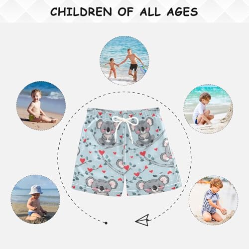 ALAZA Cute Koala Leaf Heart Boys Quick Dry Beach Board Shorts Kids Swim Trunks Bathing Suit Swimsuit 3