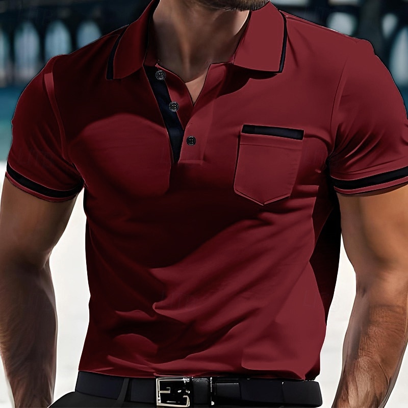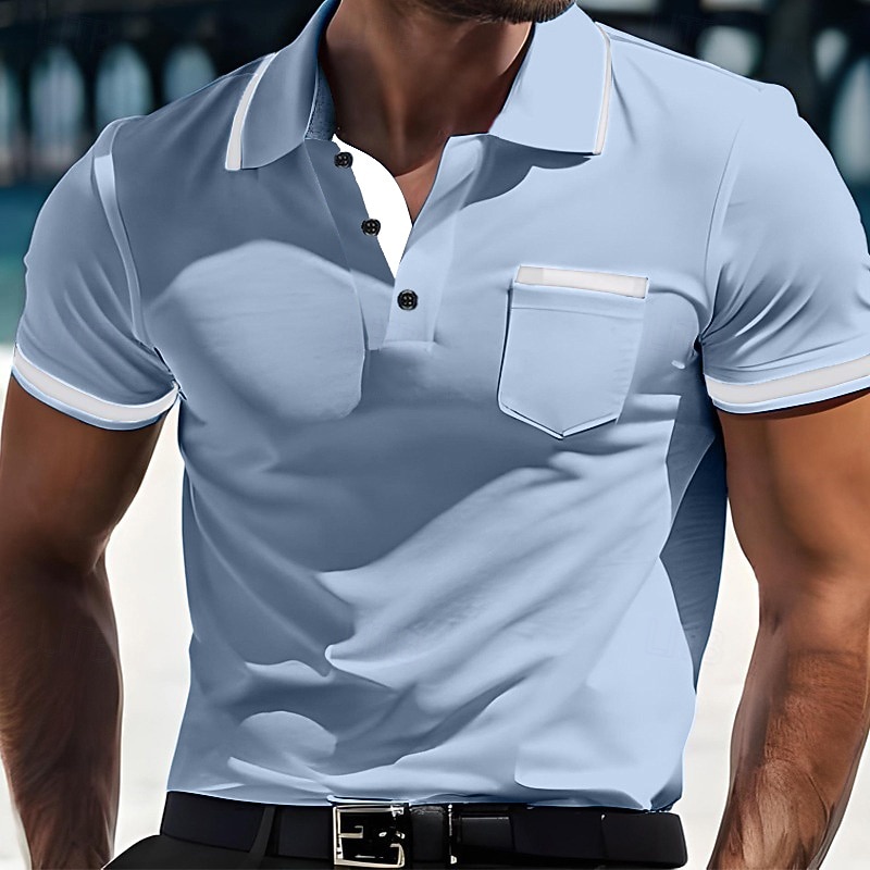 Highlights [Fabric] : Expertly crafted from a blend of 65% polyester and 35% cotton, this men's polo shirt is designed for breathability and comfort, perfect for staying cool and stylish during the summer months. The material offers a micro-elastic quality that ensures a comfortable fit and ease of movement. [Fit] : Featuring a classic regular fit, this polo shirt is tailored to provide a flattering silhouette that complements any body type. Its structure makes it a versatile choice, ideal for a relaxed, casual outing as well as for more formal business occasions. [Design Highlights] : This polo shirt boasts a ribbed collar and short sleeves accented with contrasting black details on the collar, button placket, and cuffs. A sleek chest pocket with a black trim enhances its fashion-forward appeal while adding practicality. [Occasions] : This polo shirt is suitable for a variety of occasions, whether it’s a casual gathering or business-related events. Effortlessly transitioning from a daytime to evening look, it pairs well with both jeans and chinos, making it a valuable addition to any wardrobe. [Size Range] : Available in a wide range of sizes from S to 3XL, ensuring a perfect fit for every individual. Colors available include White, Red, Dark Blue, Light Blue, and Grey, providing options for diverse style preferences.