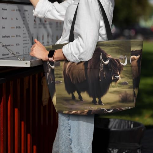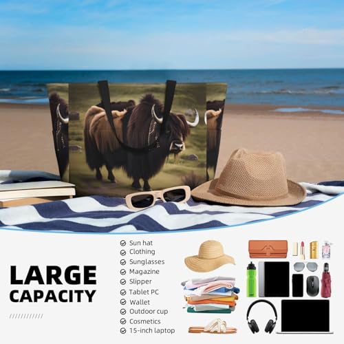 HOT ! Mighty Highland Yak Large Capacity Beach Travel Bag, Foldable Beach Bag with Zipper, Great for Grocery Bag Pool Gym Travel Shopping