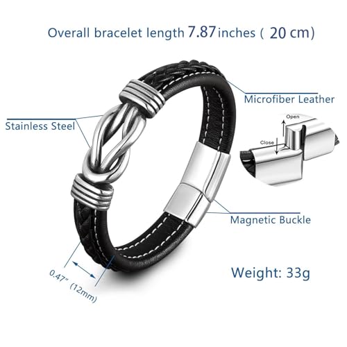 Material: Stainless SteelMetal type: Stainless SteelClasp type: MagneticChain type: Braided ChainGem type: No gemstone【To My Daughter】: This infinity bracelet symbolizes the eternal love of mom and daughter It serves as a reminder that how much you love her and you will be always with her. This will be a meaningful gift cherished by the person you love forever.【cushy Material】To my Granddaughter bracelet made of excellent genuine leather and stainless steel material, purely handmade tightly woven bracelet, soft and comfortable touch feeling; with a special stainless steel magtic clasp.7.87 inch (20 cm) (one size fits most women), Convenient to use, easy to put on or take off.【Fashion Design】: The most fashionable design allows your daughter to stay at the forefront of fashion, Inspirational bracelets can inspire your daughter's confidence and proudly display her charm, enjoy the admiring and envy of others.【Gifts for Daughter】:To my dearest daughter, as you grow older you will face many challenges in life, follow your dreams, believe in yourself, and remember to be awesome. I will always be with you.【Gift Chices】: The bracelet features an infinity knot design, which is said to represent eternal love or friendship. this to my Granddaughter Wristband Bracelet makes an ideal gift for women, perfect for any gift giving occasion, great gift for christmas, thanksgiving day, graduation, birthday and casual days to your daughter or just as a surprise to remind that special one how much you care! Perfect for everyday use. High quality materials and excellent craftsmanship ensure long-lasting durability.