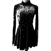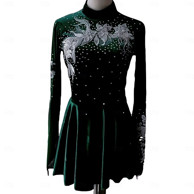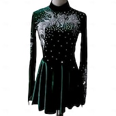 More information about Figure Skating Dress Women's Girls' Ice Skating Dress Black Dark Green Thumbhole Halo Dyeing Mesh Spandex Stretchy Training Practice Professional Skating Wear Thermal snug enduring Crystal / Rhinestone