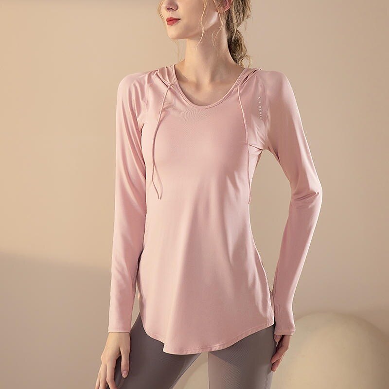 Women's Plus Size Yoga Tops Hooded V-neck Loose Thin Sports Sweater Outerwear Yoga Fitness Gym Clothes Winter Long Sleeve 7