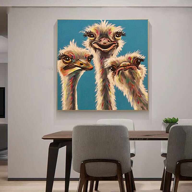 Handmade Oil Painting Canvas Wall Art Decoration Modern Cute Animal Ostrich Family for Home Decor Rolled Frameless Unstretched Painting 3